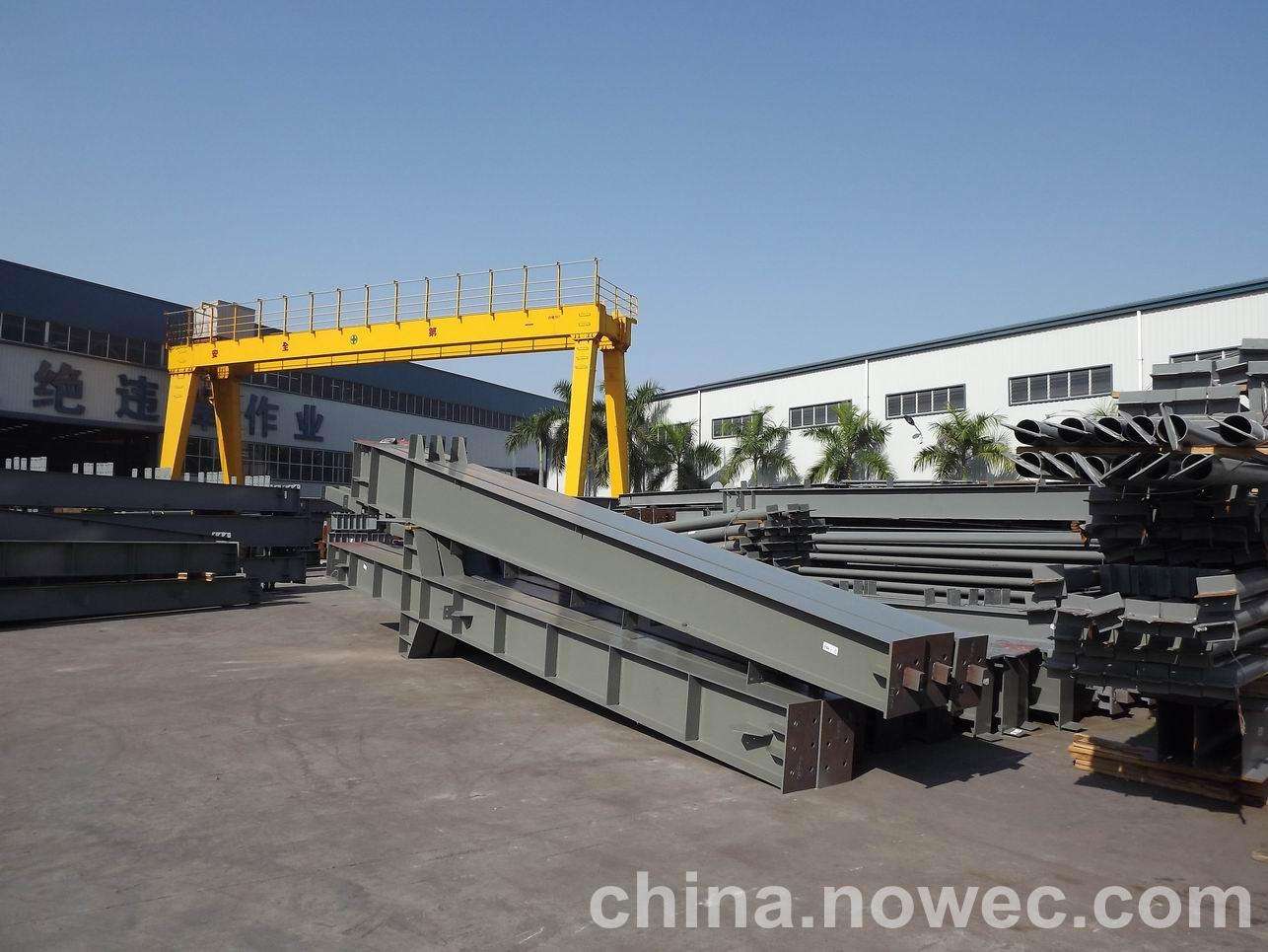 条状单元一般沿长跨方向分割,其宽度约为1~3个网格,其长度为l2或l2/2(l2为短跨跨距)。块状单元一般沿张家港网架平面纵横向分割成矩形或正方形单元。每个单元的重量以现有起重机能胜任为准。条(块)与条(块)之间可以直接拼装,也可空一网格在高空拼装。由于条(块)状单元是在地面拼装,因而高空作业量较高空散装法大为减少,拼装支架也减少很多,又能充分利用现有起重设备,故较经济。这种安装方法适用于分割后网架的钢度和受力状况改变较小的各类中小型网架,如两向正交正放四角锥、正放抽空四角锥等网架。